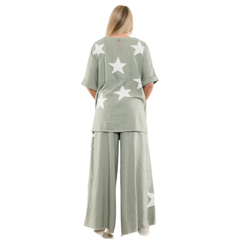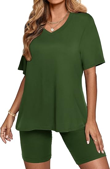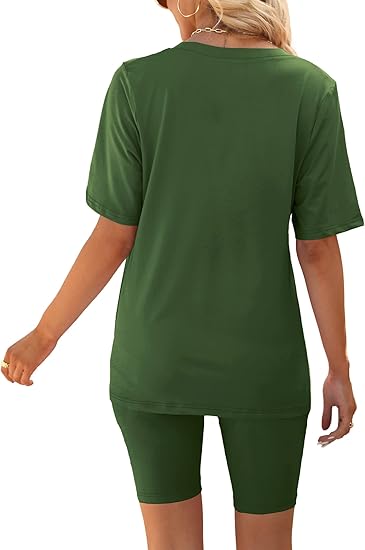 AGSEEM Conjunto deportivo de dos piezas para mujer, de verano, de cintura alta, manga corta, Verde militar