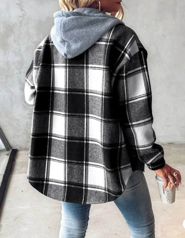 Daysskk Checked Shirt Women's Long Sleeve Checked Shirt Women's with Button Placket Tops Loose