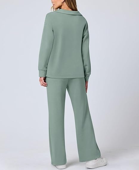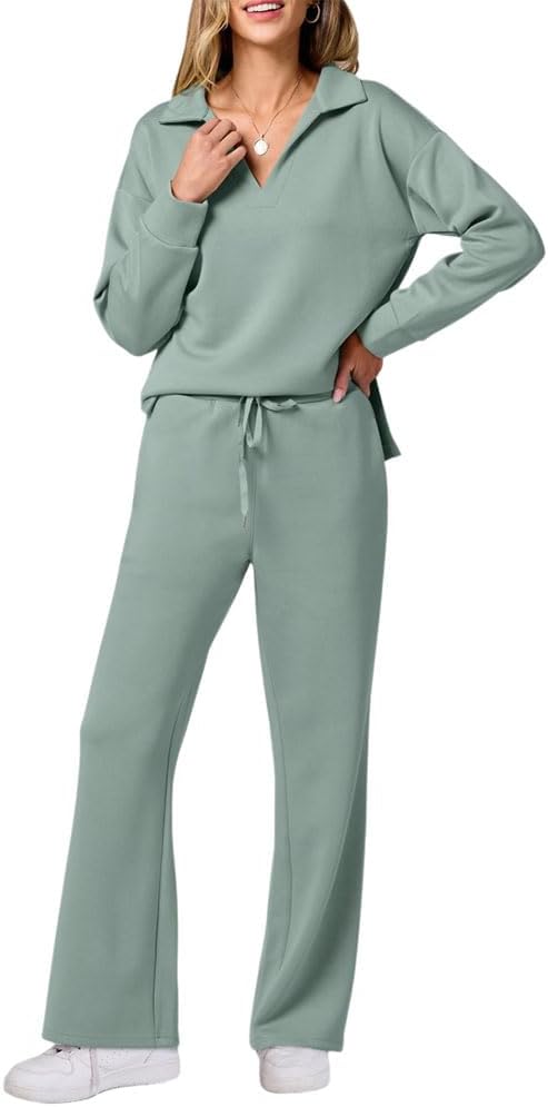 Conjunto deportivo de 2 piezas para mujer, manga larga, cuello en V, sudadera sin botones, pantalones deportivos, pantalones deportivos de otoño